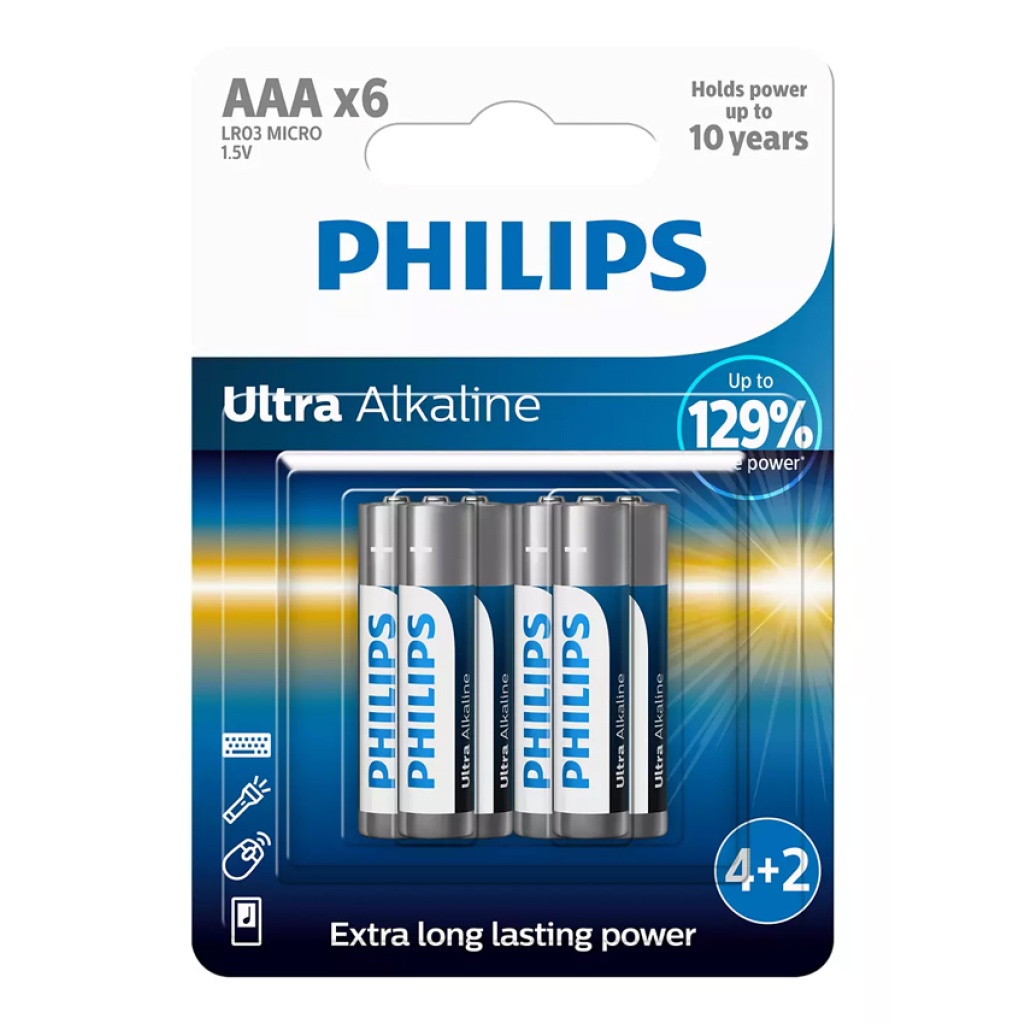 PHILIPS Ultra αλκαλικές μπαταρίες LR03E1BK/00, AAA LR03 1.5V, 500τμχ