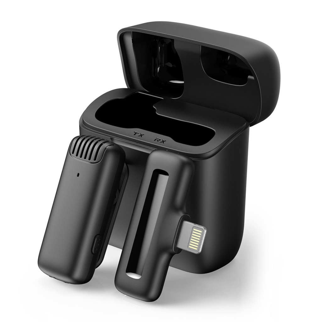 APEXEL ασύρματο μικρόφωνο APL-MIC013 με θήκη φόρτισης, Lightning, 2.4GHz, μαύρο