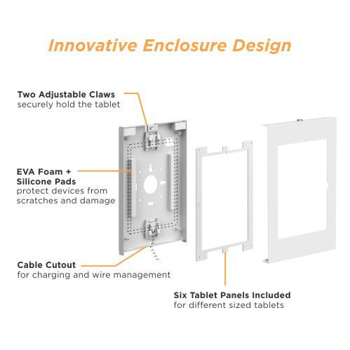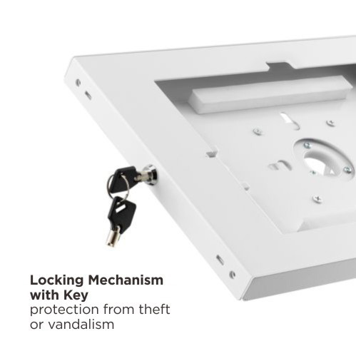 Μεταλλική βάση για tablet από 9.7″ έως 11″ με αντικλεπτικό μηχανισμό κλειδώματος με κλειδί. Η επιφάνεια τοποθέτησης του tablet διαθέτει αντιολισθητικά pads σιλικόνης ώστε να είναι πιο σταθερή και να μην γλιστράει η συσκευή.
