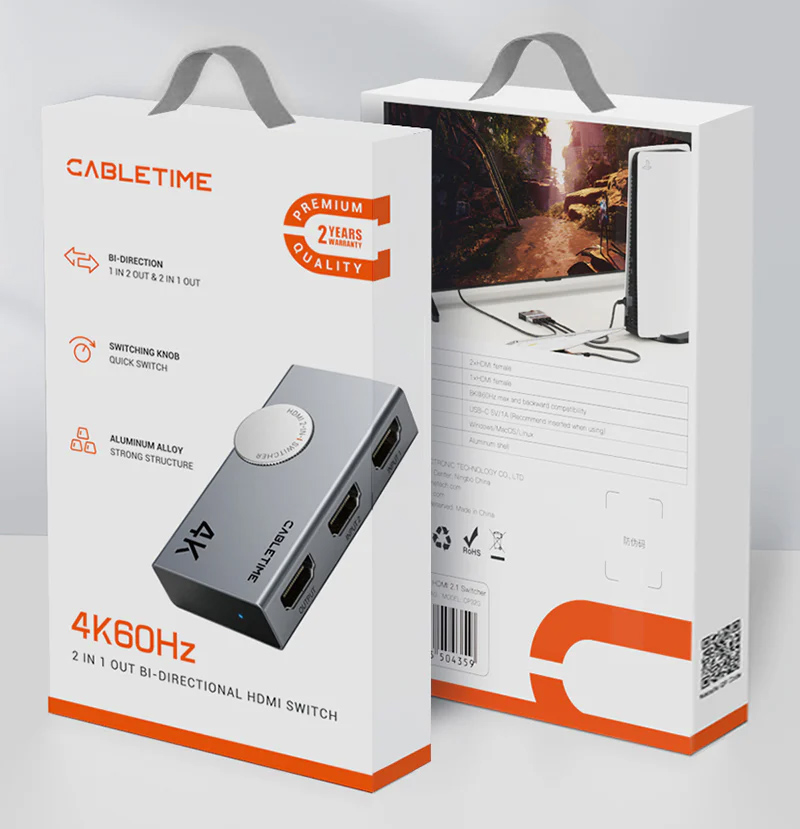 Το HDMI switch της Cabletime επιτρέπει την σύνδεση μιας οθόνης σε δύο συσκευές με HDMI διεπαφή αλλά και την σύνδεση δύο οθονών σε μια συσκευή με HDMI διεπαφή.