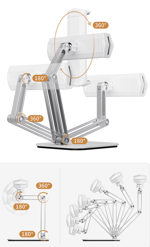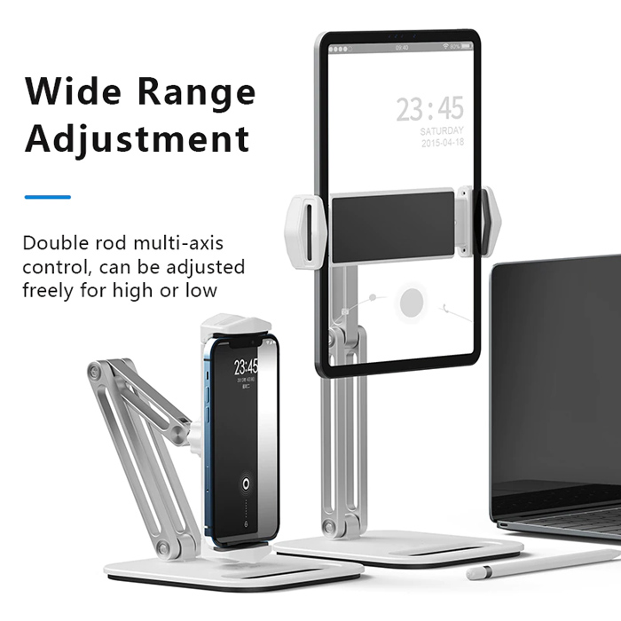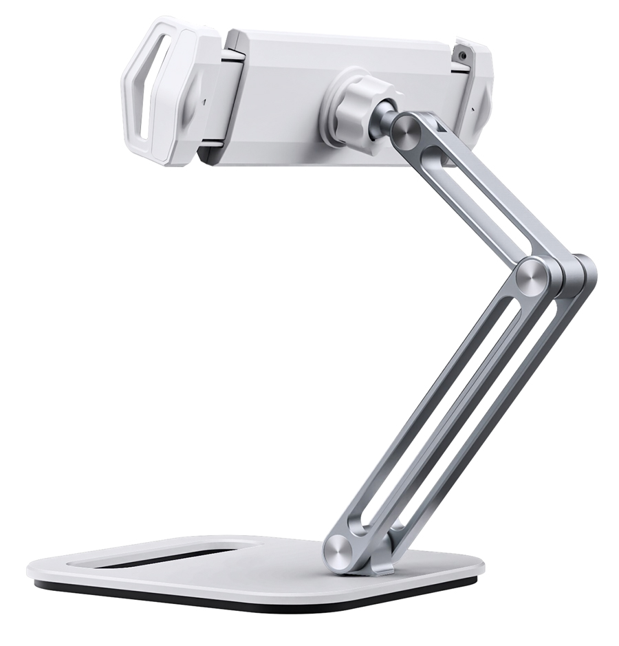 Μεταλλική βάση, συμβατή με tablet και smartphone από 4″ έως 13″. Διαθέτει μετακινούμενο βραχίονα που επιτρέπει να προσαρμόσετε την συσκευή σας στην ιδανική γωνία θέασης.