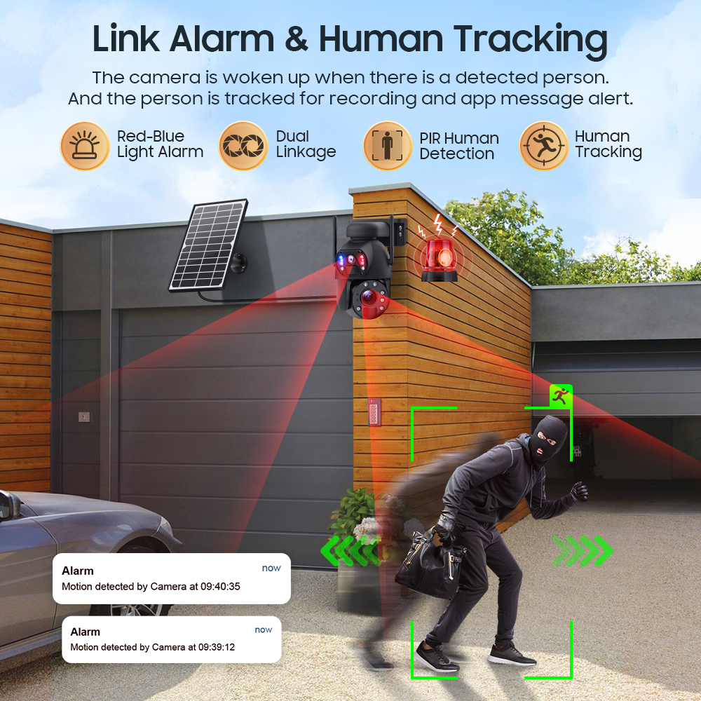Μπορεί να ανιχνεύσει κινήσεις, στέλνοντας ειδοποιήσεις στο smartphone σας κάθε φορά που ανιχνεύεται κίνηση αλλά και να ενεργοποιήσει οπτικό (με φως) συναγερμό.