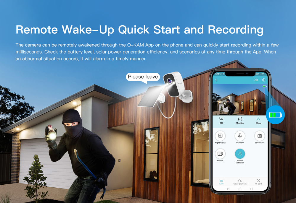 Ρυθμίζεται εύκολα και ελέγχεται από smartphone με την εφαρμογή O-KAM Pro μέσω 4G δικτύου κινητής τηλεφωνίας.